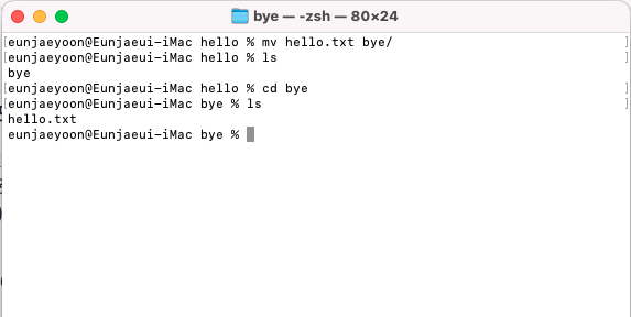 7. mv : 폴더나 파일의 이름을 변경, 또는 폴더나 파일의 위치 옮기기