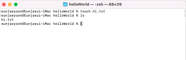 ls -a: a는 all 의 의미를 가지고 있어, 숨어있는 폴더나 파일을 포함한 모든 항목을 터미널에 출력