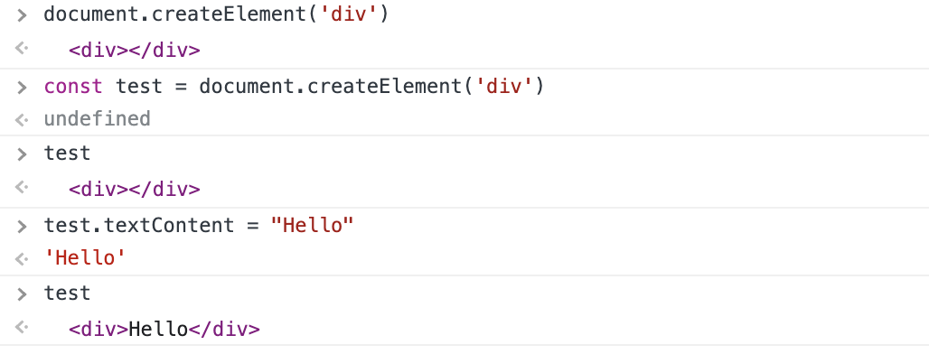 DOM 으로 HTML 을 조작하는 방법중 가장 기초적인 것은 element를 만드는 것이다.