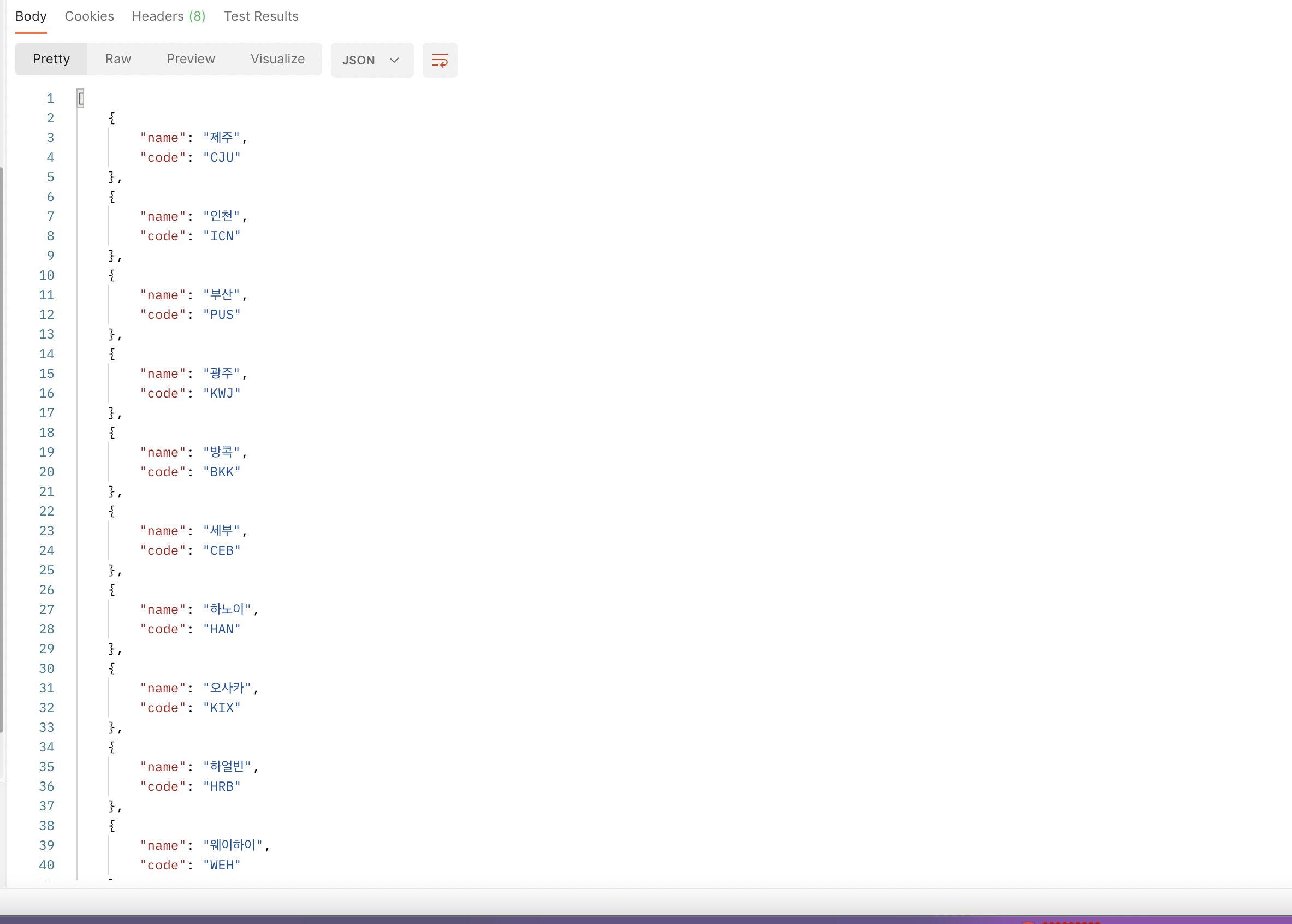 http://localhost:3001/airport를 포스트맨으로 확인해 본 결과!