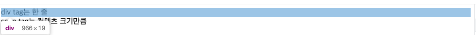<div> tag 는 한 줄을 다 차지하고 <span> tag는 컨텐츠의 크기만큼만 공간을 차지한다.