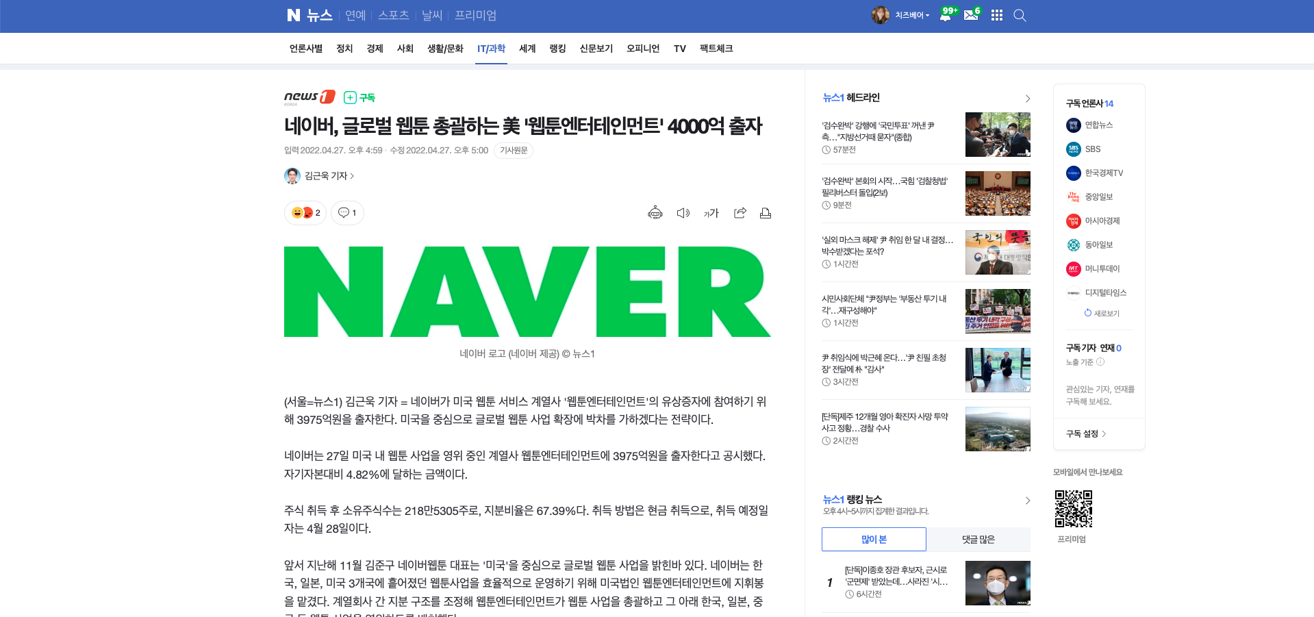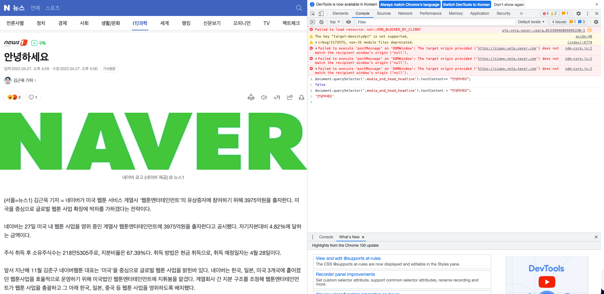 console 창으로 넘어가 document.querySelector('.media_end_head_headline').textContent = "안녕하세요";