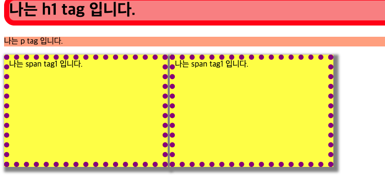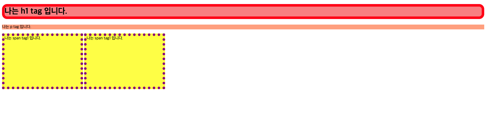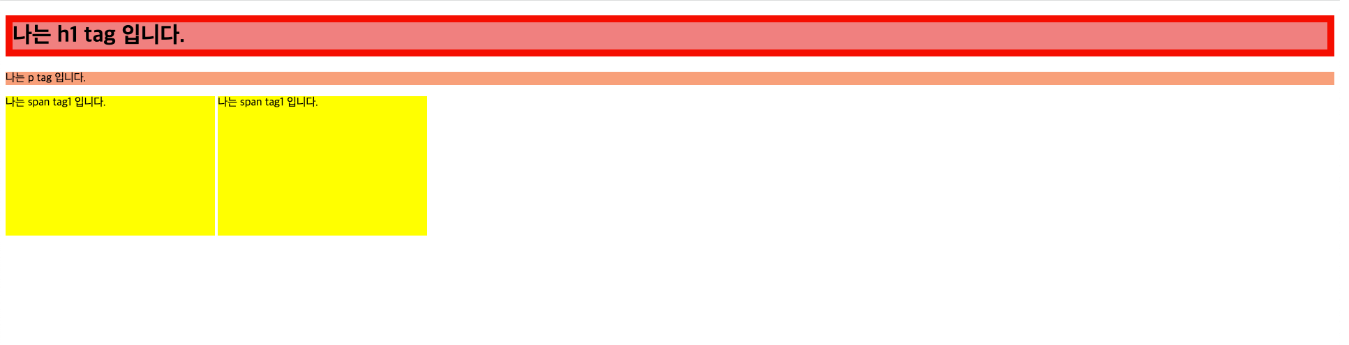 h1 tag 에 border의 빨간 선을을 추가하여 확인해보면 아래와 같이 h1 tag의 테두리를 확인할 수 있다.
